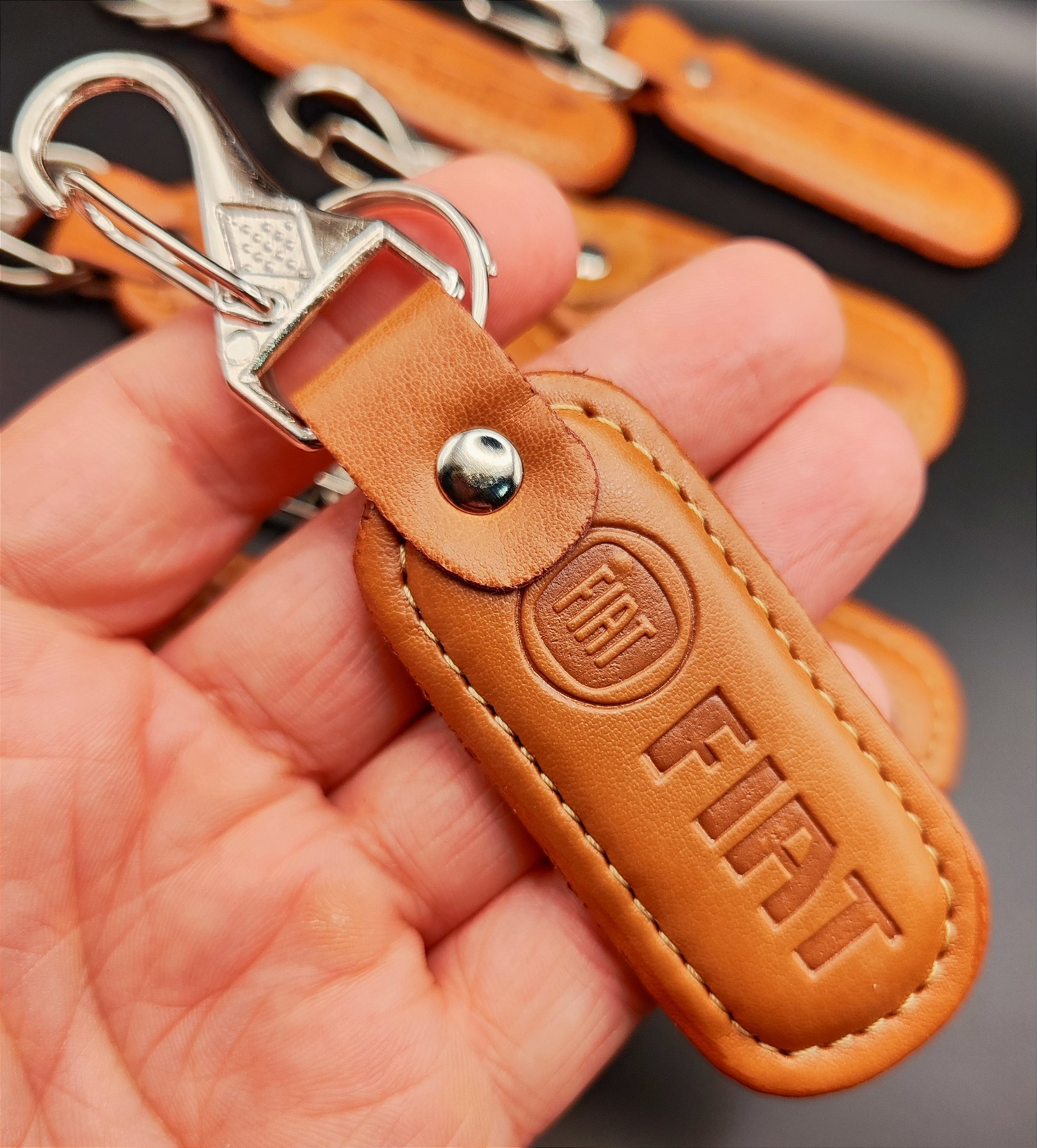 Logomarca em uma lado do chaveiro timbrado em baixo relevo