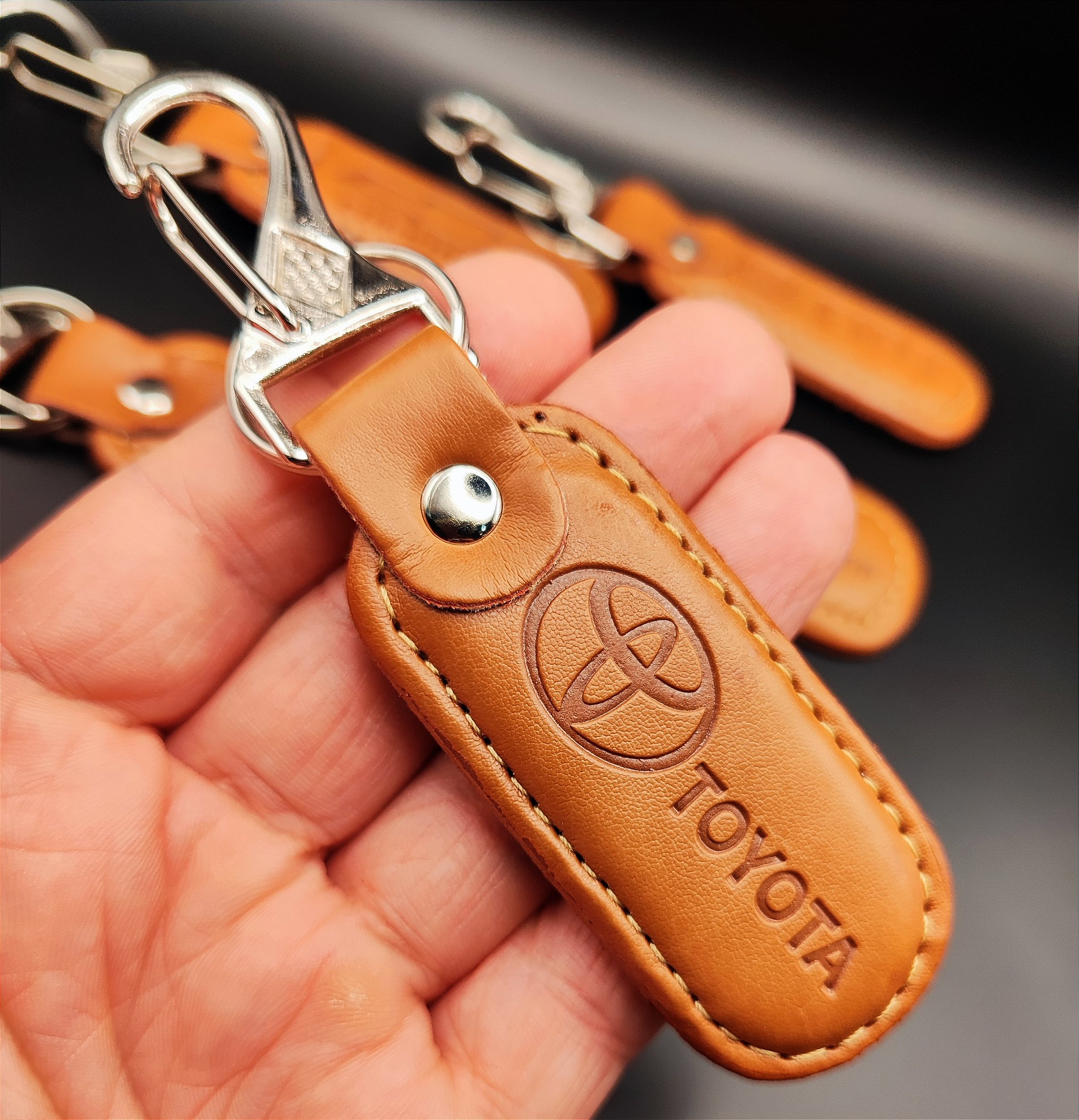 Logomarca em uma lado do chaveiro timbrado em baixo relevo