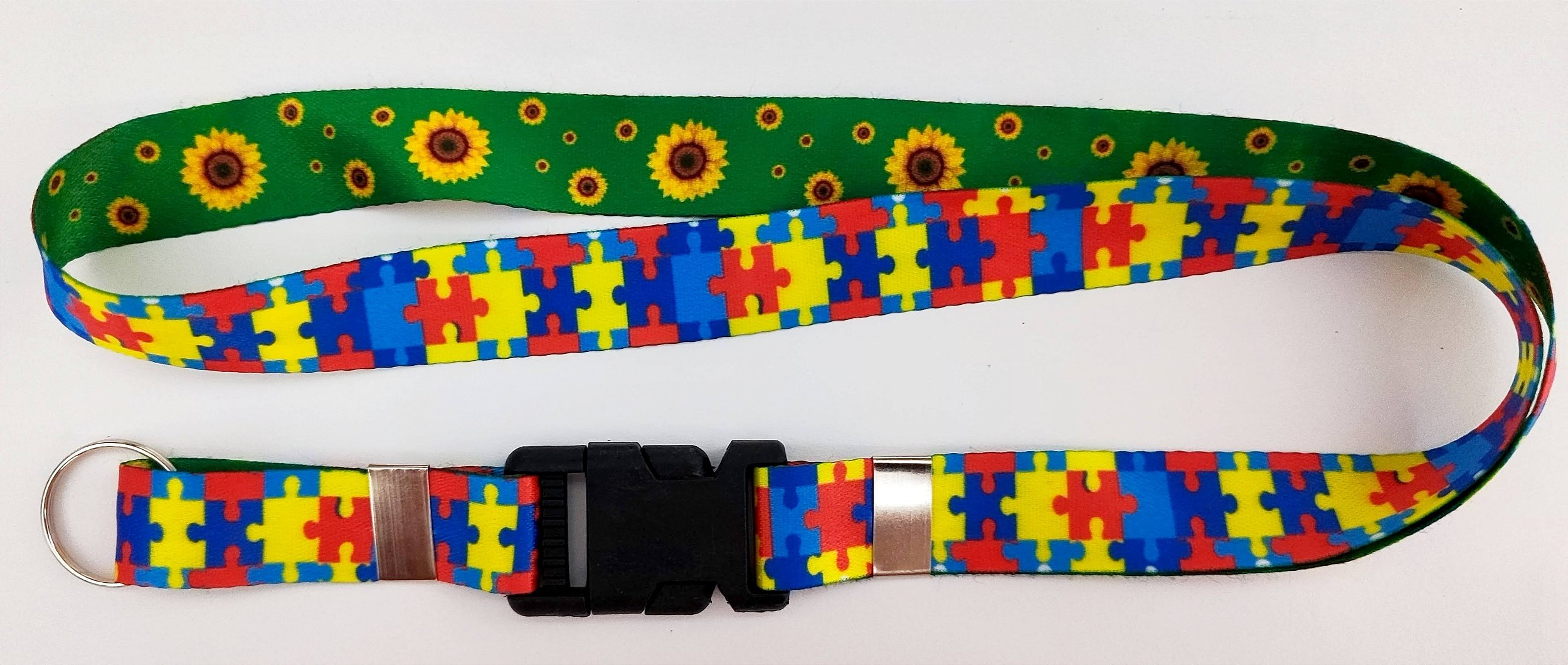 Cordão com Engate Rápido Quebra-Cabeça Autismo Girassol