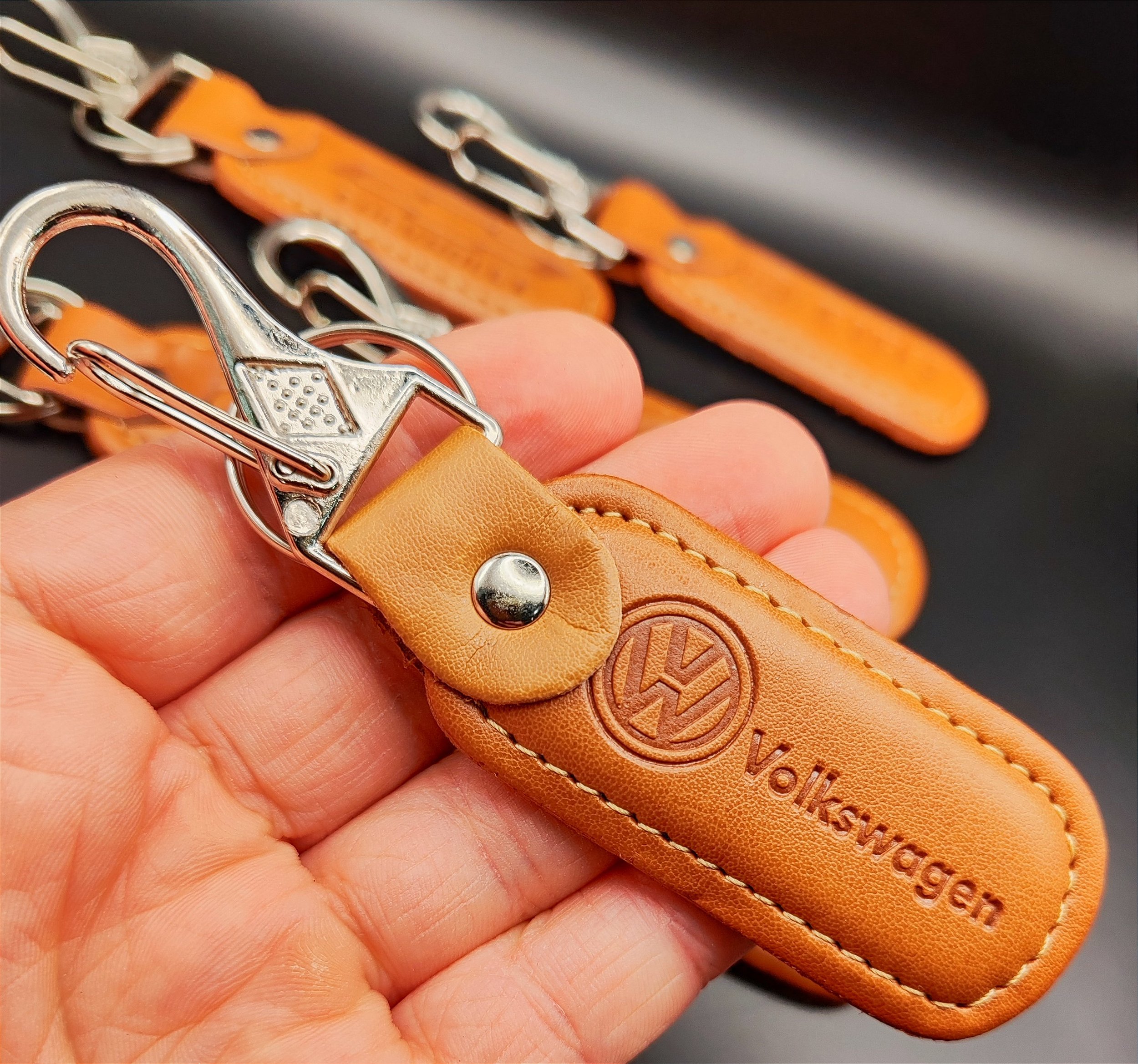 Logomarca em uma lado do chaveiro timbrado em baixo relevo