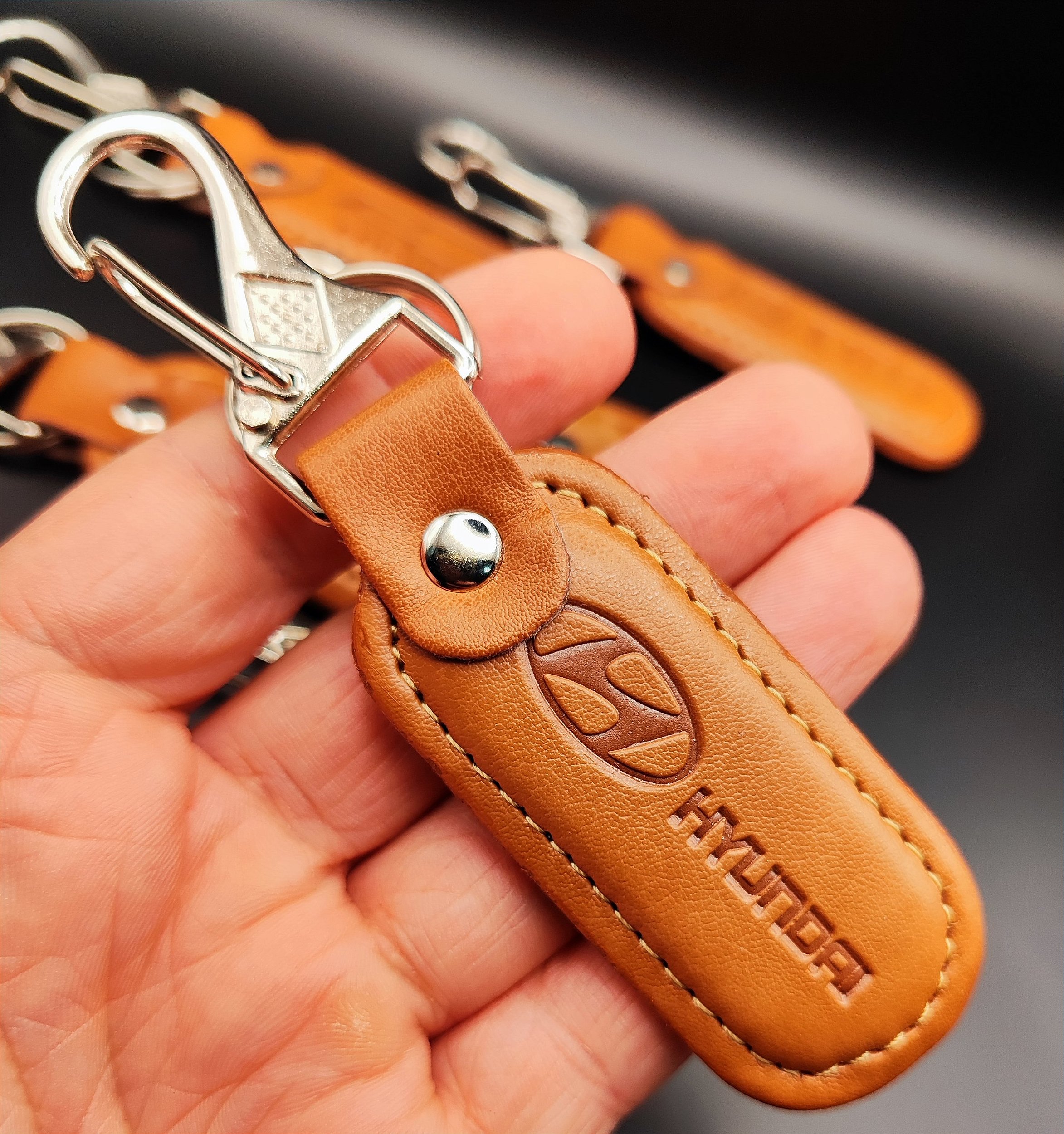 Chaveiro Mosquetão Couro Carro Hyundai