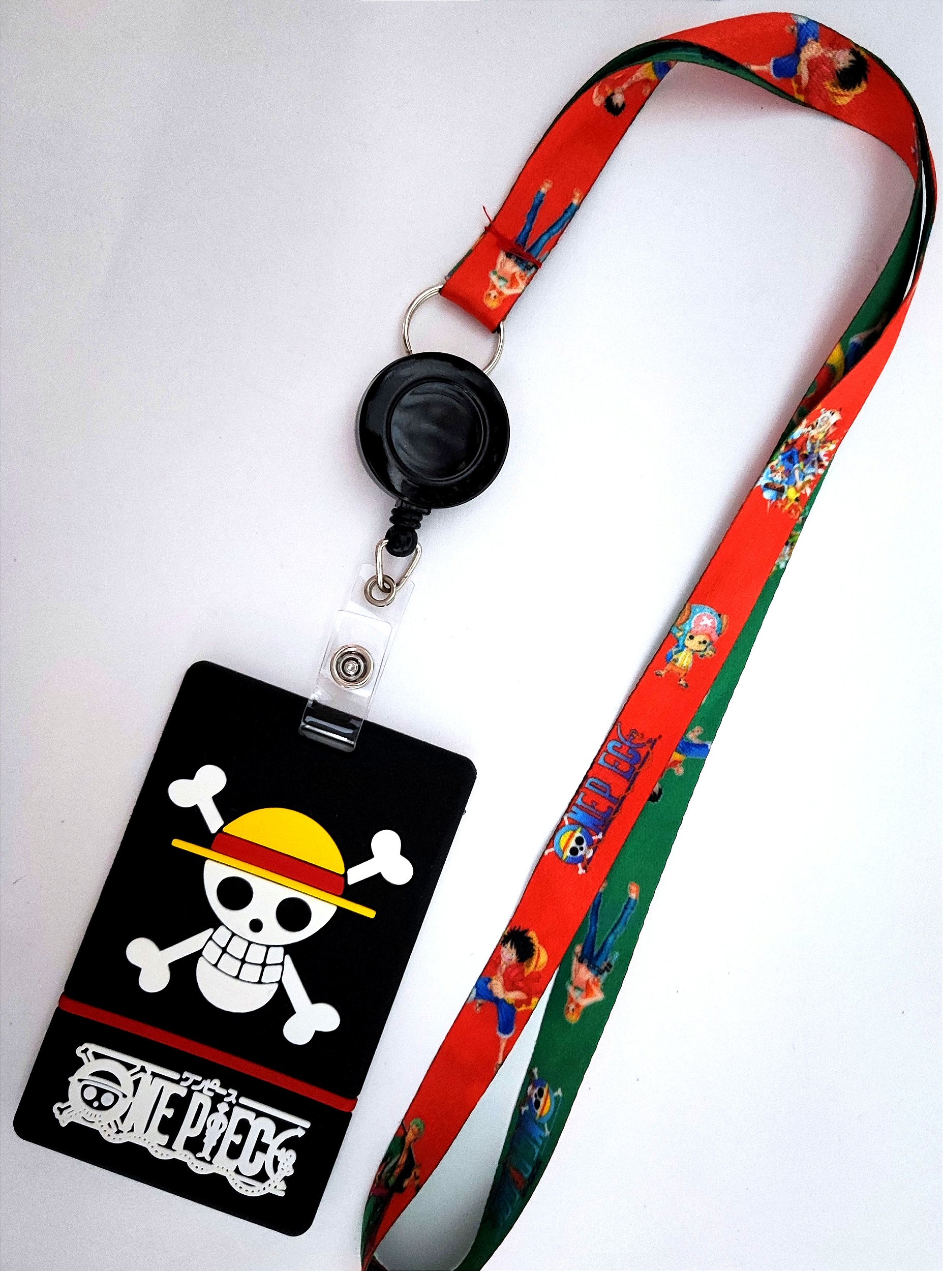 Kit Cordão + Porta Crachá Retrátil + Porta Cartão Emborrachado Bandeira One Piece